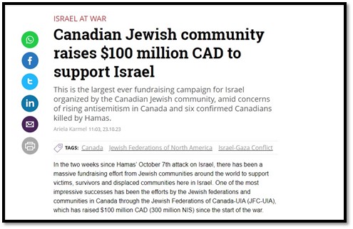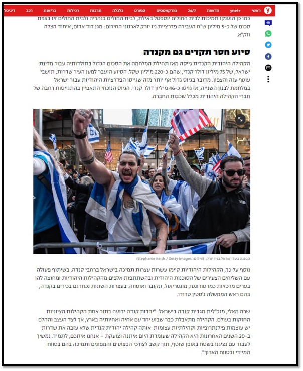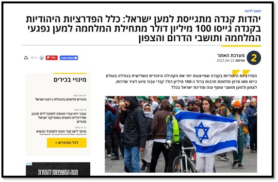 The Jewish community in Canada raised 100 million dollars to support Israel – בחדרי חרדים