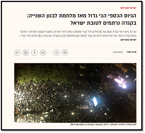 Web2Info - Canadian Jewry is mobilizing for Israel: all the Jewish federations in Canada have raised 100 million dollars since the beginning of the war for the victims of the war and the residents of the south and the north