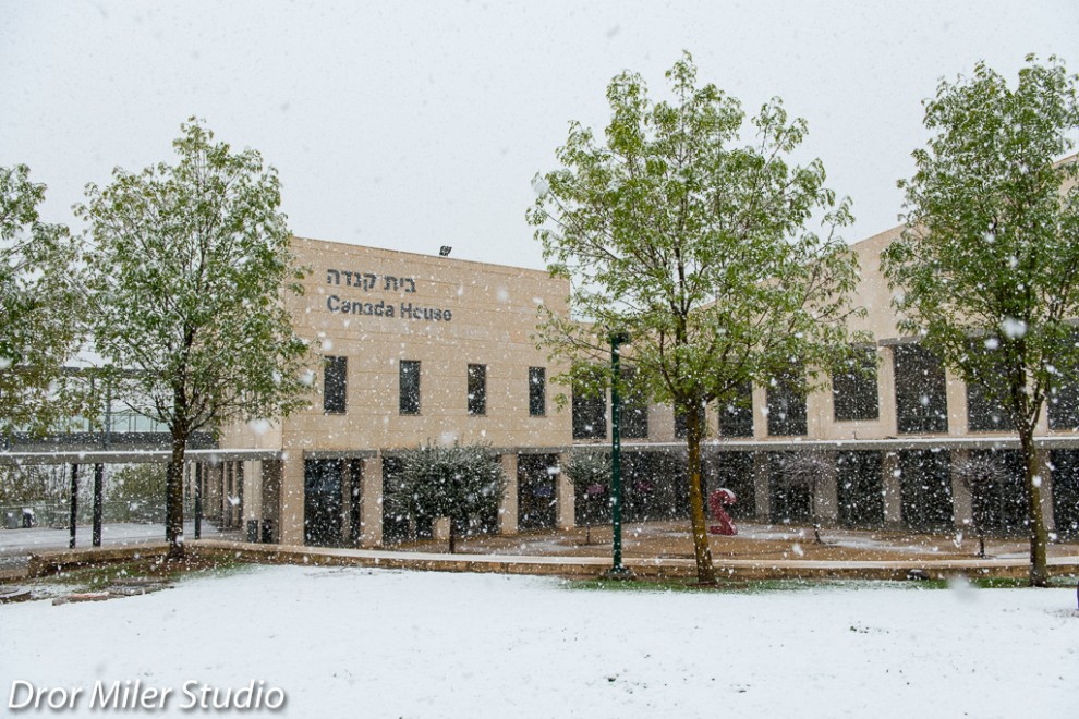 Photo: Beit Canada in Tel Hai College in the midst of this weekend’s snow storm.